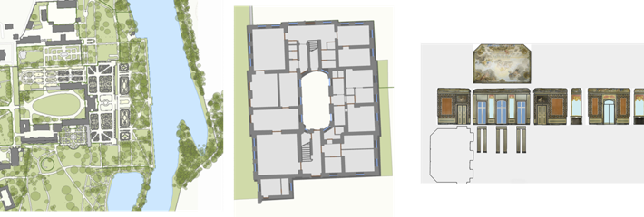 - elewacje, wnętrza lub historię zmian pałacu,