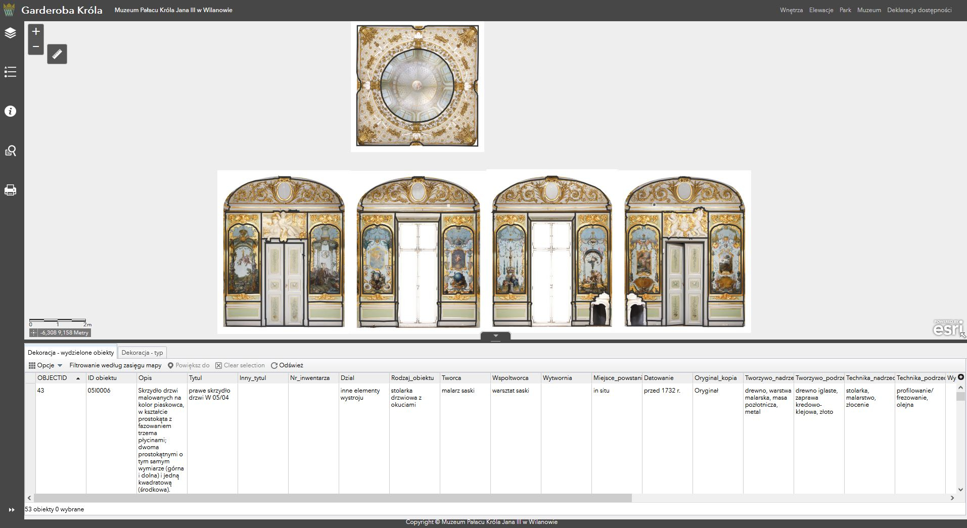 GIS (Geographic Information System), czyli system informacji geograficznej, pozwala na kompleksowe archiwizowanie danych, które można zlokalizować w przestrzeni muzeum i przyległego terenu. Dzięki niemu można ulokować na mapie cyfrową dokumentację danego obiektu w miejscu, w którym się on znajduje. Na podstawie zgromadzonych danych specjaliści tworzą mapy tematyczne czy aplikacje oraz wykonują analizy przestrzenne. Każdy obiekt posiada unikalny identyfikator oraz opisujące go atrybuty. Przypisuje się go do warstwy tematycznej, aby można było łatwiej go zlokalizować. Pracownicy muzeum mają dostęp do całej bazy danych, a zwiedzający – do nieco okrojonej wersji. Z systemu GIS od lat z powodzeniem korzysta lider projektu, Muzeum Pałacu Króla Jana III w Wilanowie. Omówmy go więc na jego przykładzie.